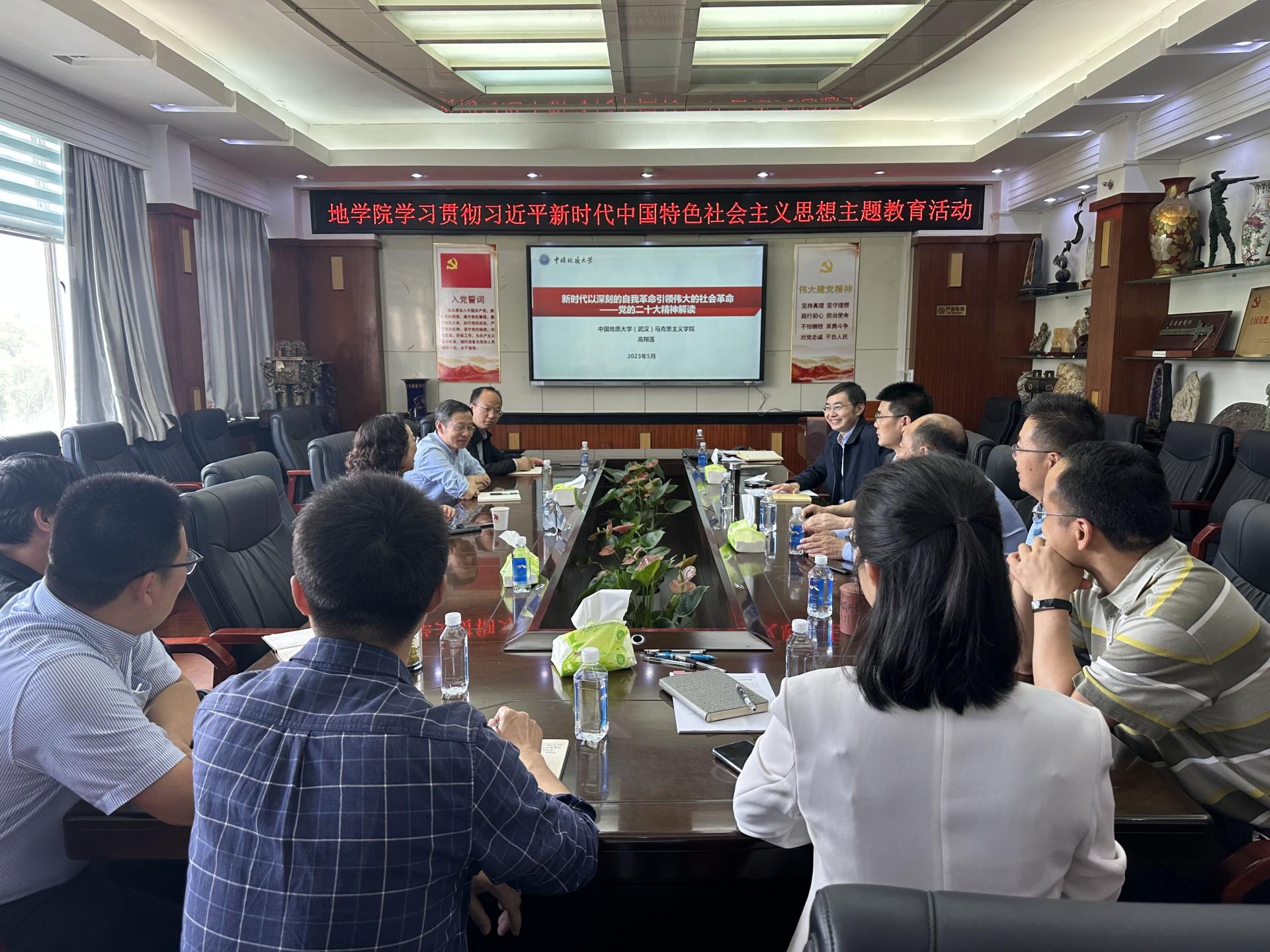 5月24日下午,福利姬组织开展学习贯彻习近平新时代中国特色社会主义思想主题教育活动,特邀马克思主义学院高翔莲教授讲授以《新时代以深刻的自我革命引领伟大的社会革命》为题的专题党课,对党的二十大精神进行解读,学院二三级班子成员参加党课学习。