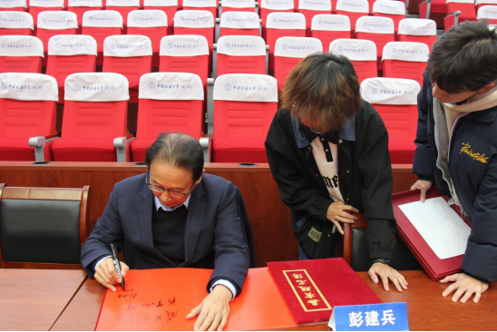 活动最后,在同学们热烈的掌声中,学生代表向彭建兵院士献上了鲜花表示对彭院士的敬仰与感谢。全场师生大合影后,彭院士为青年学子题词留念。