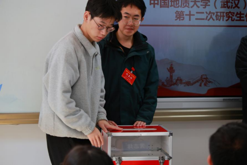 答辩结束即进入投票选举环节。全体代表顺利完成了对学院第十二届研究生代表大会常任代表会议代表候选人和学院2025届研究生主席团成员候选人的无记名投票。
